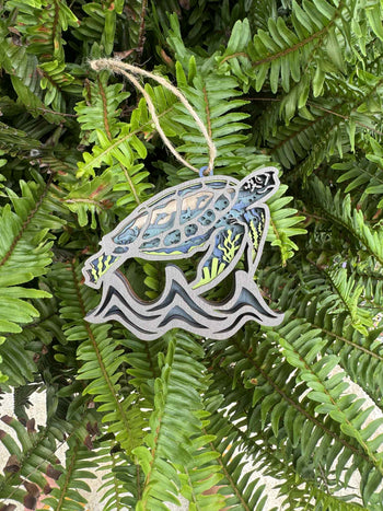 This layered wood design features a sea turtle shape on a wave base and an ocean scene. *Please include a note with your order if purchasing an item with Name...
