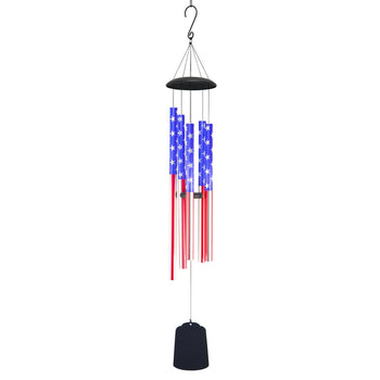 Show your love of the USA all year round with this stars and stripes printed wind chime! Featuring 5 aluminum chimes printed with American flag-inspired graphics, this is a striking,...