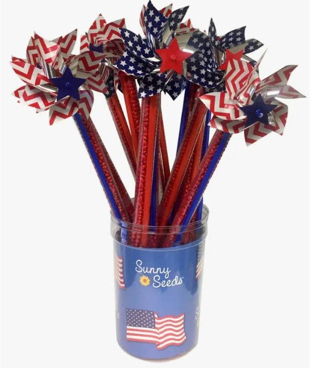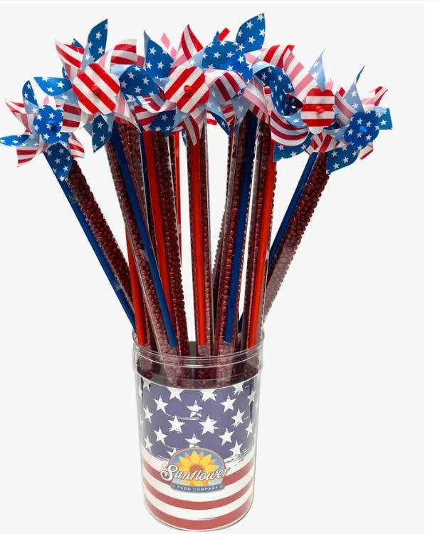 Celebrate America with these fun Patriotic Sunny Seed Pinwheels! Filled with 4 oz. of red chocolate covered sunflower seeds.