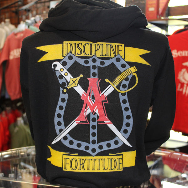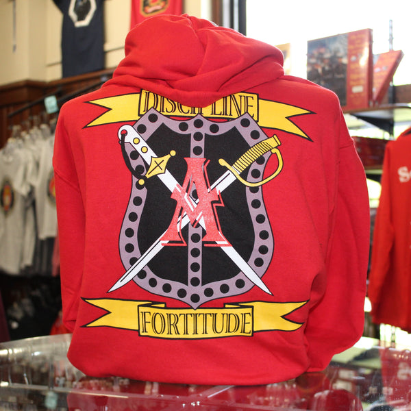 This warm hooded sweatshirt features the 1st Recruit Training Battalion emblem on the front left chest and full color Alpha Company emblem on the back. Available in sizes S - XXXL