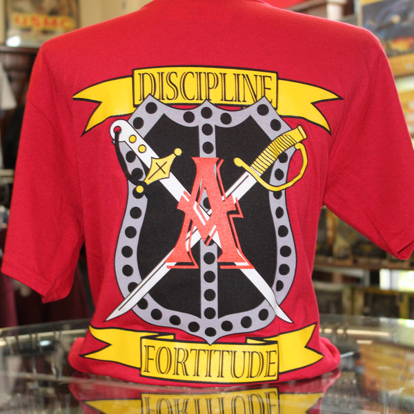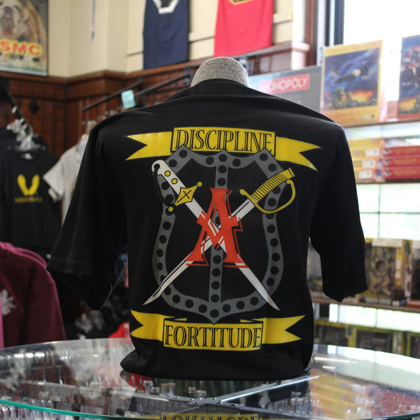 This t-shirt features the 1st Recruit Training Battalion emblem on the front left chest and full color Alpha Company emblem on the back. Available in sizes S - XXL