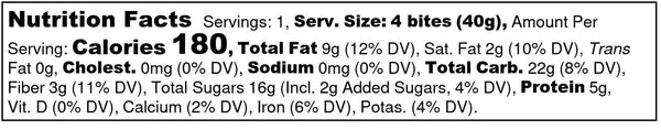 This size is a one serving, on-the-go pack. 4 perfectly portioned bites per pouch. Look no further for the perfect snack - everything you need in one BITE! Our energy bites are packed with healthy fats, fiber, and protein, making them a convenient, healthy, on-the-go snack! Our clean, balanced ingredients sustain blood sugar levels and leave you feeling great all day.