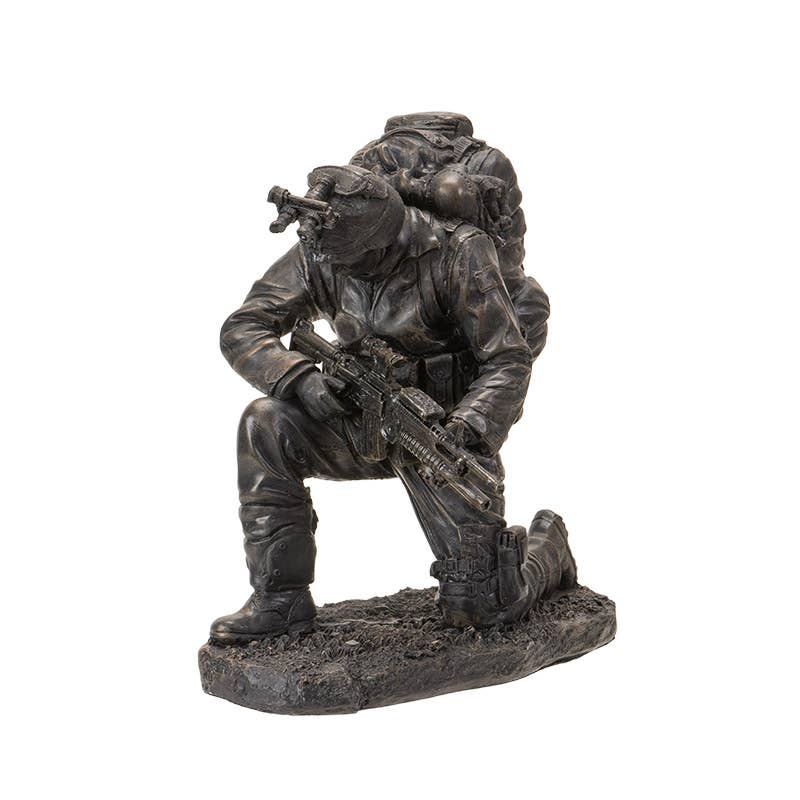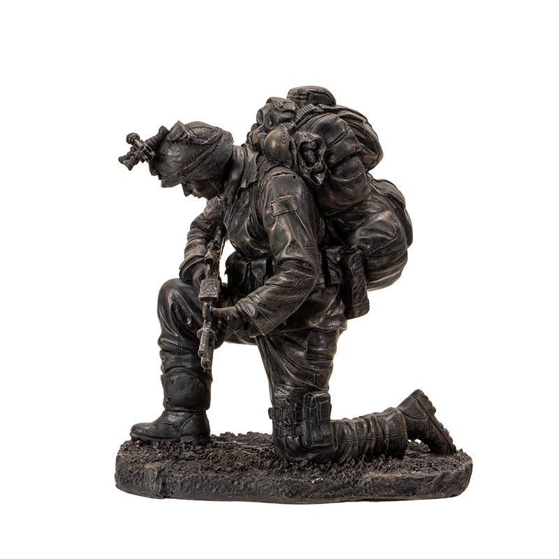Looking to add a touch of history and patriotism to your collection. Pacific Giftwares' Military Armed Forces collection is meticulously crafted, showcasing iconic uniforms and weapons. Whether you served or know someone who served, these collectibles will bring a piece of American Legacy into your home. It is perfect for All Branches: the Army, Navy, Marines, Air Force, Coast Guard, National Guard, and Space Force. Armed Forces Praying Soldier Product Size: 5 1/2" X 3 3/4" X 6" Material: Cold Cast Resin Case Pack: 12
