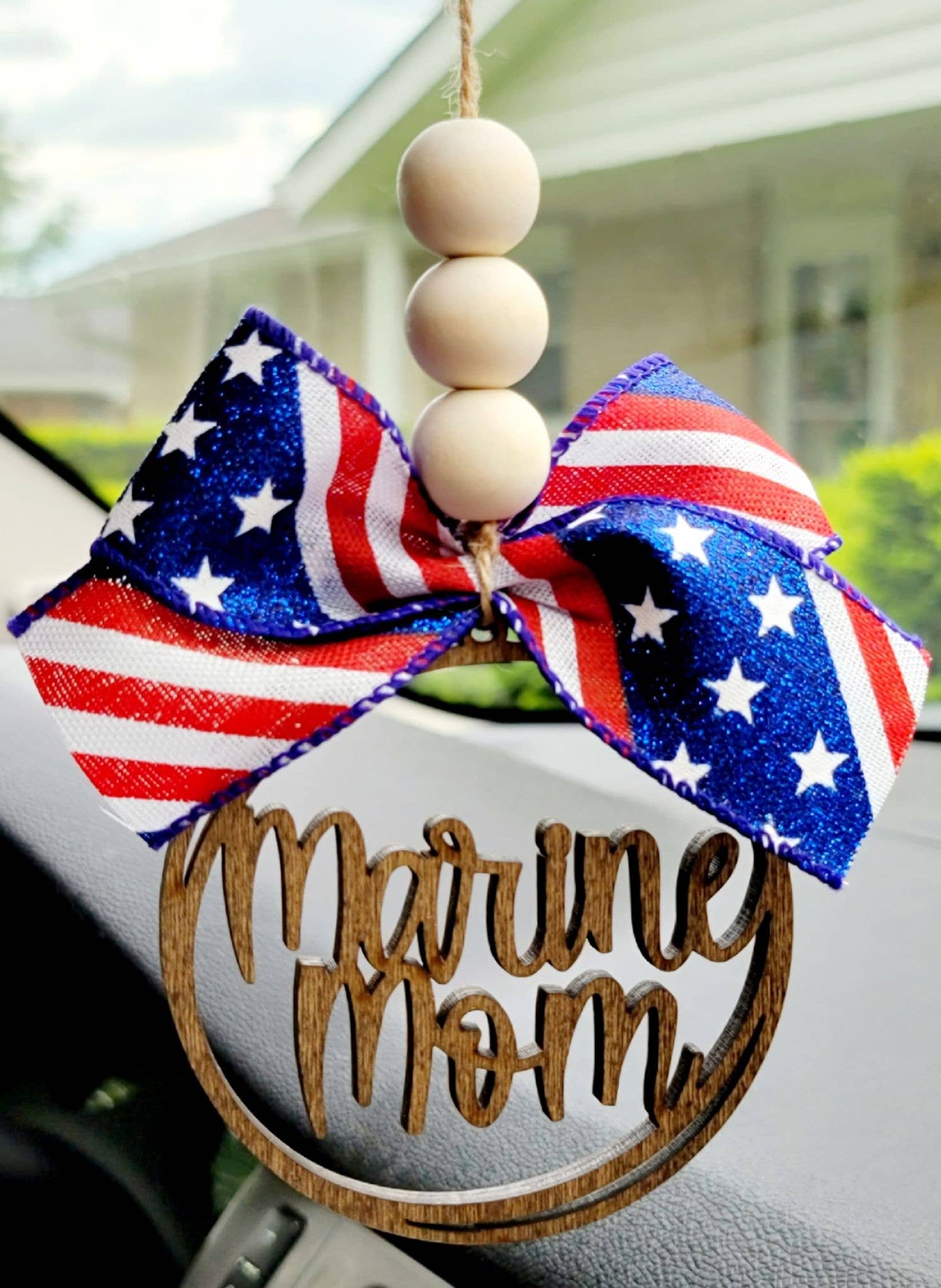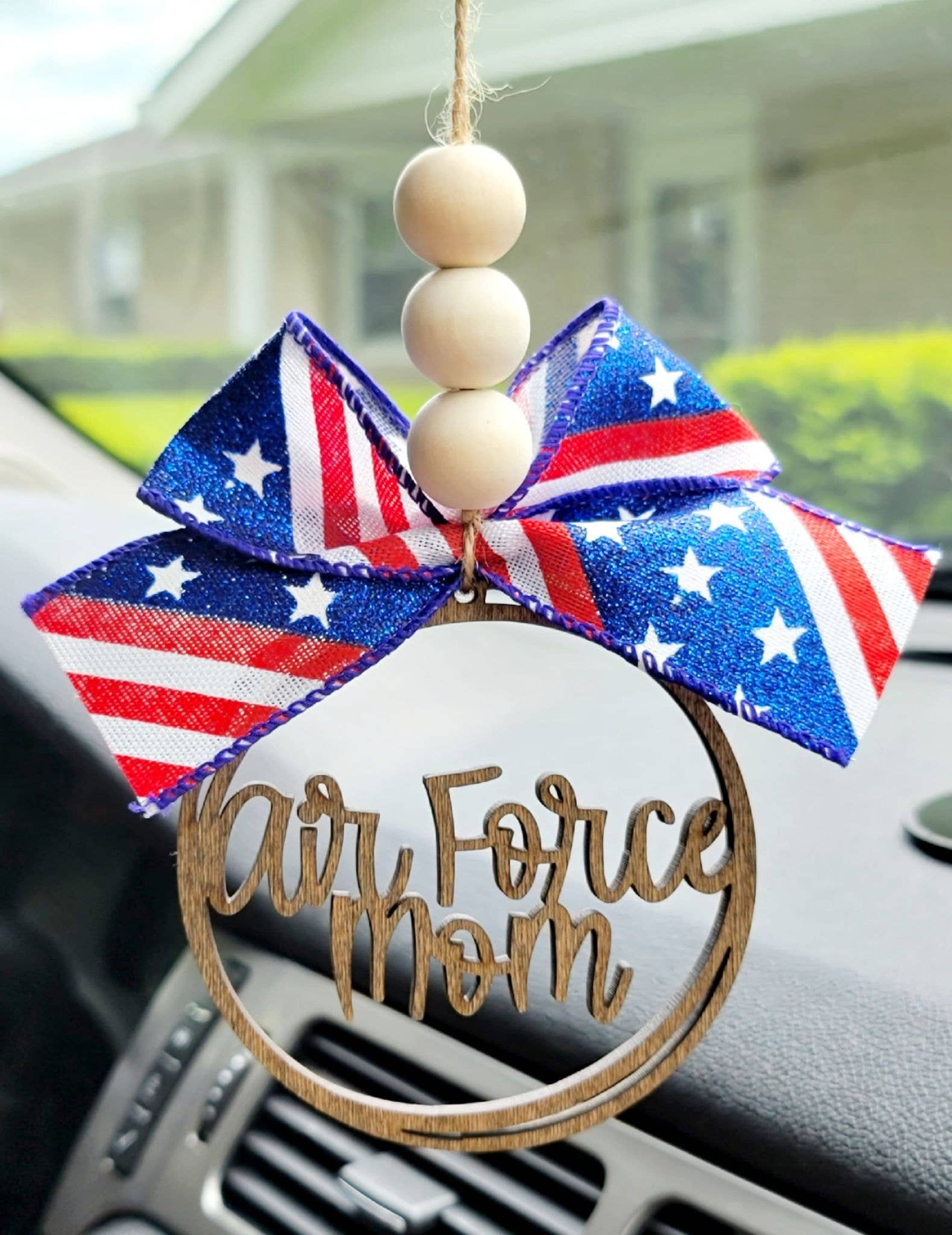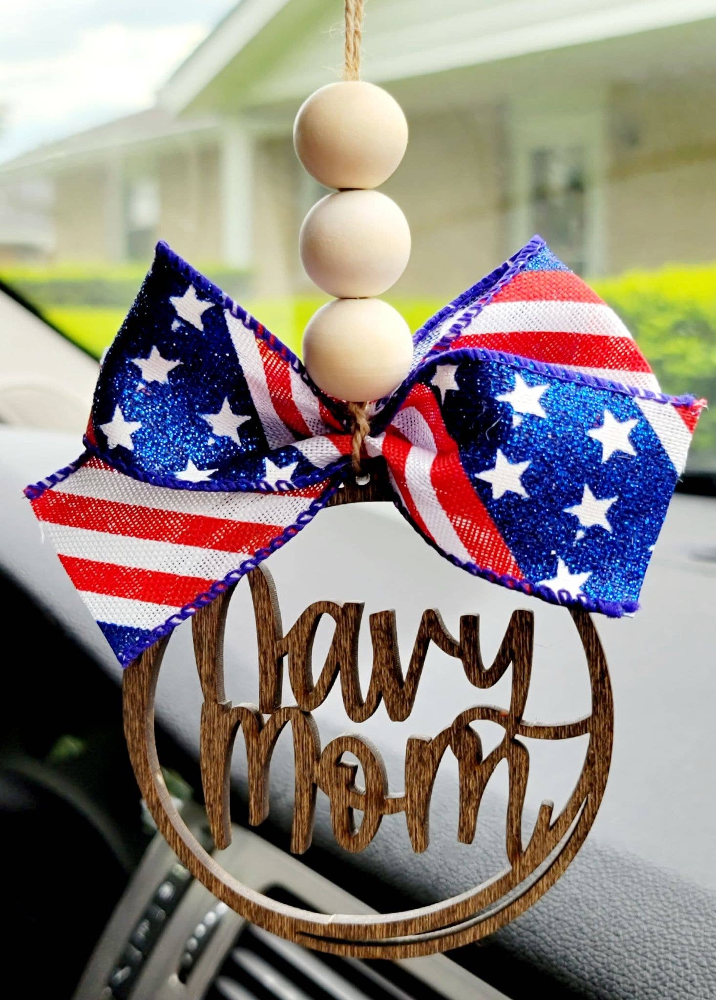 This beautiful car charm hangs from your rear-view mirror. It is an eye-catching statement piece that shows off your style to all who see your car. Essential oils can be added to the three natural wood beads at the top.
