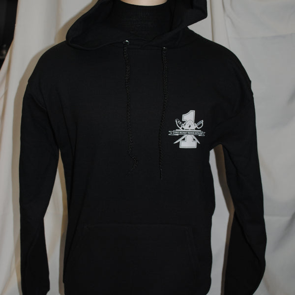 This warm hooded sweatshirt features the 1st Recruit Training Battalion emblem on the front left chest and full color Bravo Company emblem on the back. Available in sizes S - XXL