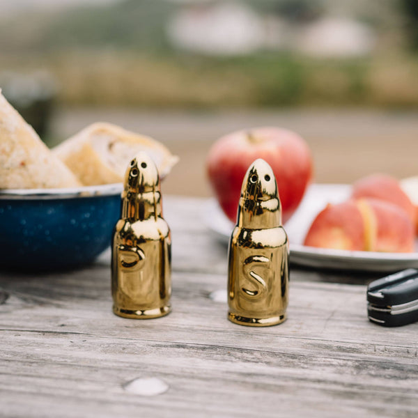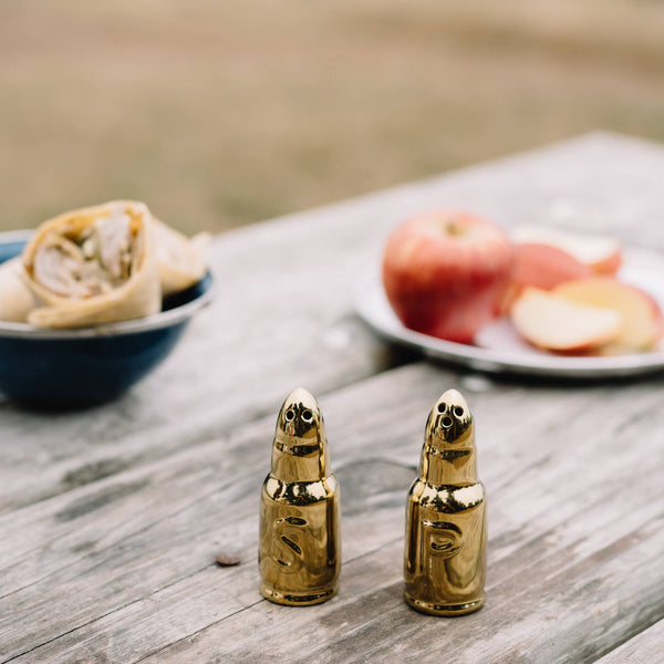 Caliber gourmet bullet salt and pepper shakers are a tactical and strategic addition to your table.