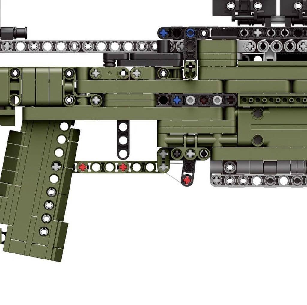 The Caliber Precision rifle is constructed with building blocks, comes with a scope, bolt-action handle, and ammo, so can shoot real plastic projectiles.