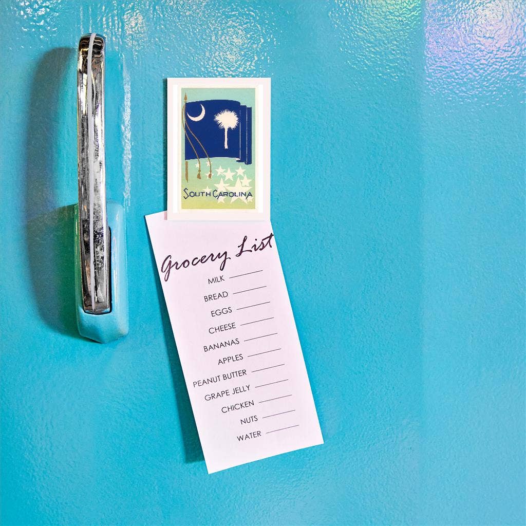 Magnet FZ-38 Flag of South Carolina. This is a Magnet Fridge Magnet featuring an image from our State Flags collection titled Flag of South Carolina. Search keywords: crescent,palmetto,stars,vertical,portrait