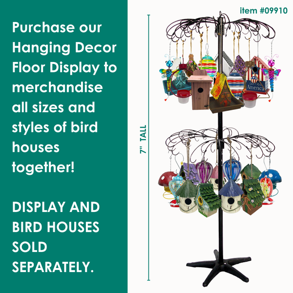 Invite feathered friends into the garden with our “God Bless America” Wooden Birdhouse. This patriotic piece features a 1.25” entrance and a 1.5” perch, making it ideal for attracting chickadees, nuthatches, titmice, and warblers. The front features red star detail on the entrance atop the USA’s stars and stripes!