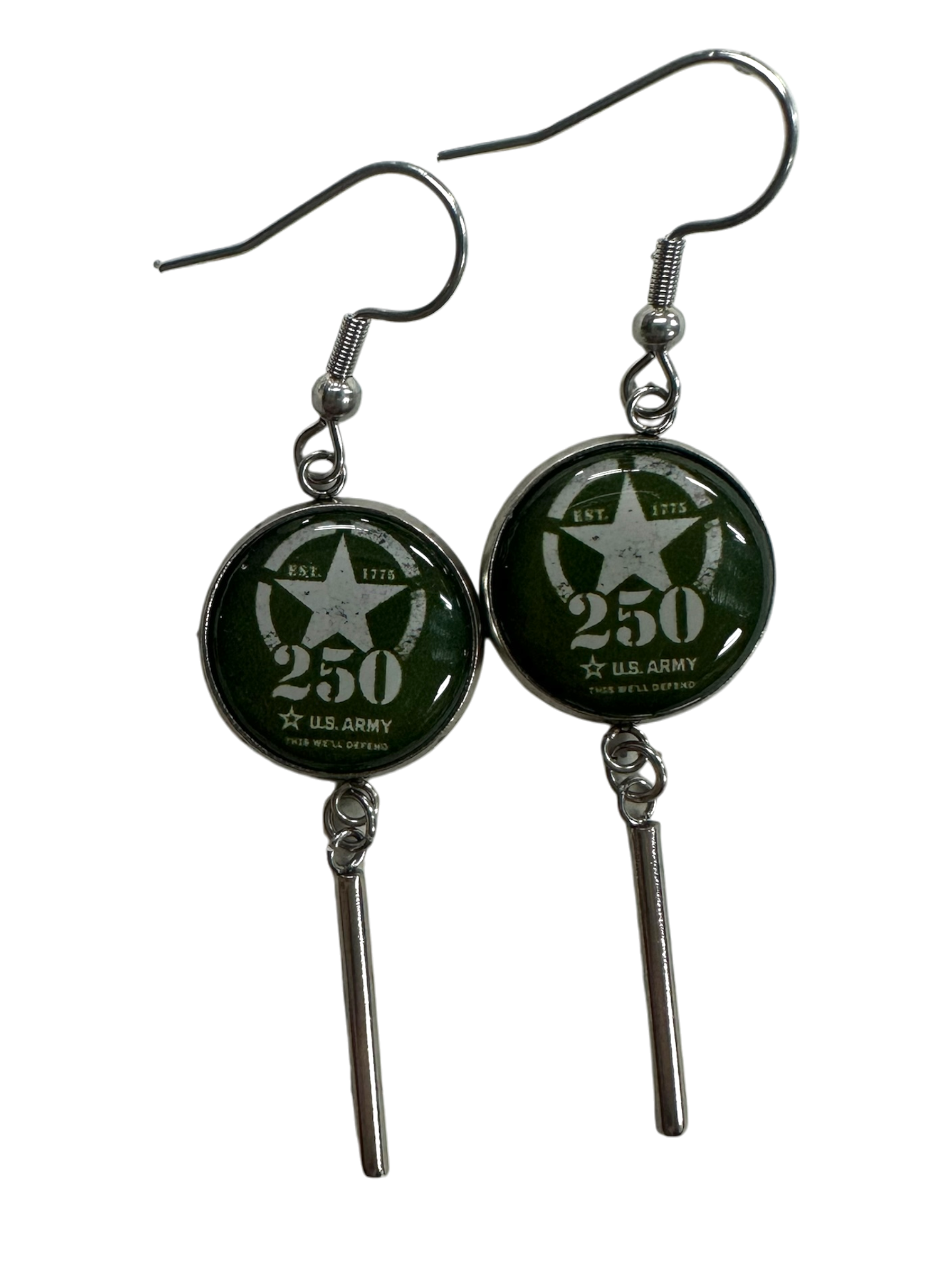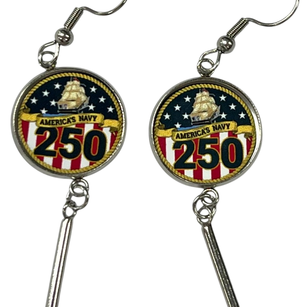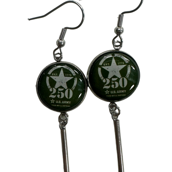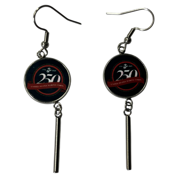 Honor the 250th Anniversary of the Army, Navy, or Marine Corps with these beautifully crafted, officially licensed bar drop charm earrings. Made with sterling silver ear wires and stainless steel casings, the charms feature a permanent setting designed for lasting wear. A drop bar is added for extra style. Perfect for expressing your military pride or as a thoughtful gift for veterans and families. Features: Officially licensed U.S. Army, Navy, or Marine Corps product (specify variation) High-quality sterling silver ear wires Durable stainless steel casings Permanent setting for lasting wear Benefits: Show your pride in the Army, Navy, or Marine Corps Commemorate the 250th Anniversary Make a meaningful gift for veterans or military families Durable, beautiful, and stylish