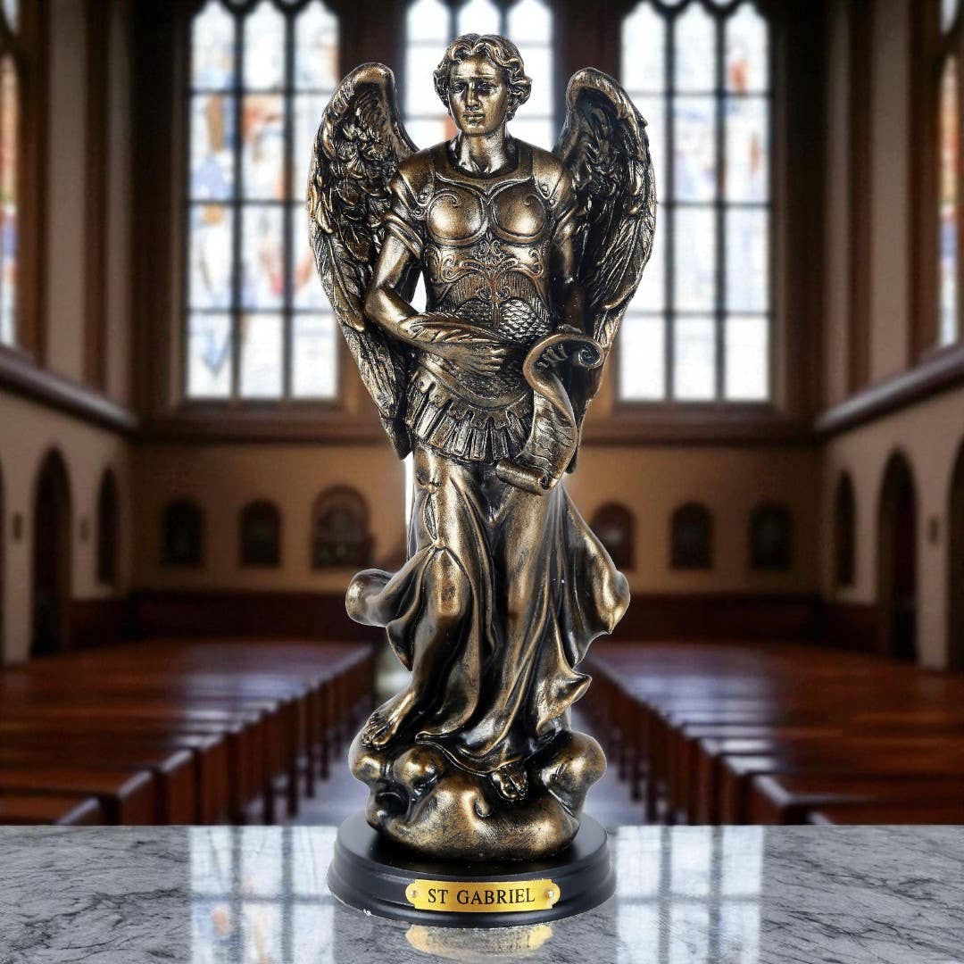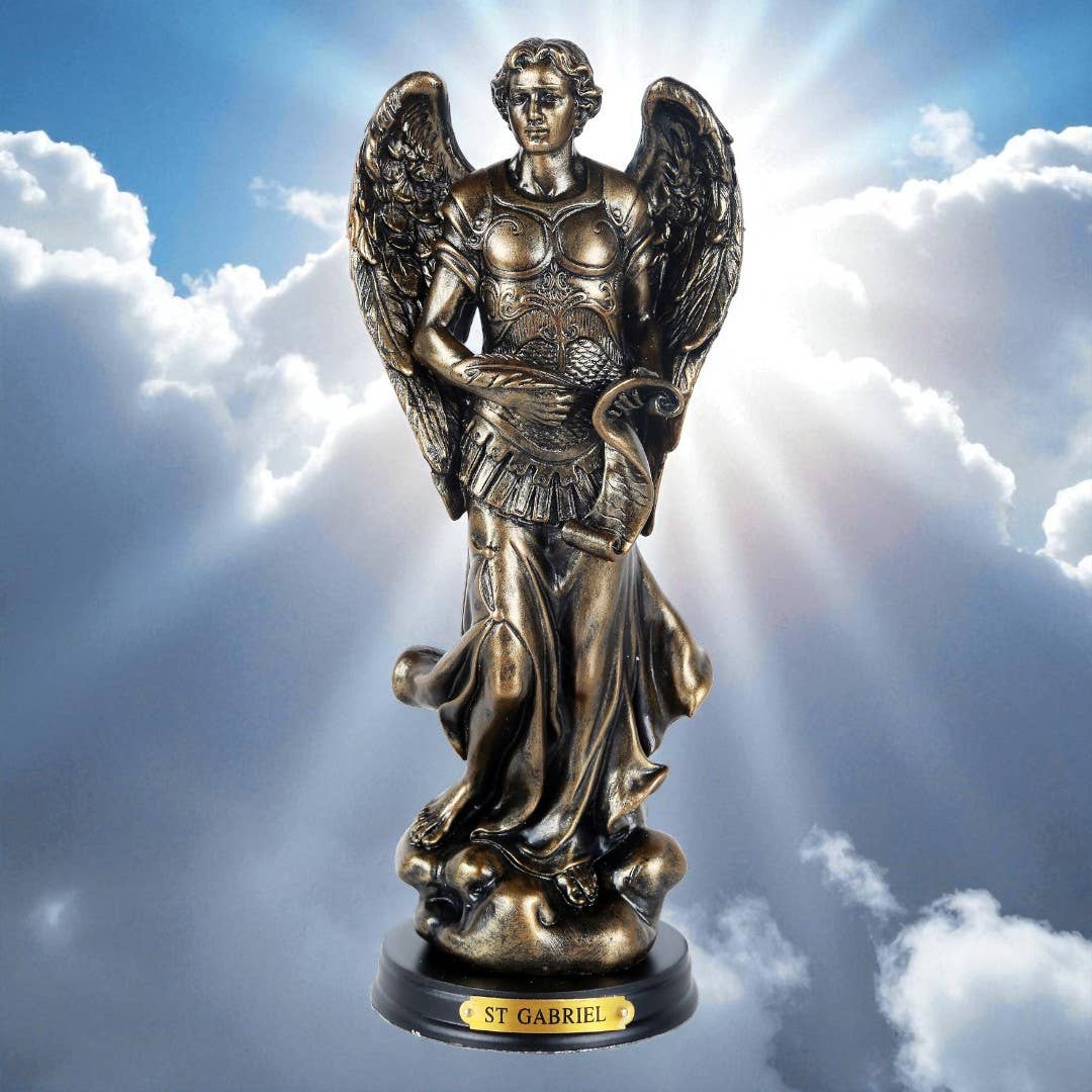 Archangel Gabriel Product Size: 3.25" x 2.75" x 8.25" Material: Cold Cast Resin Case Pack: 18