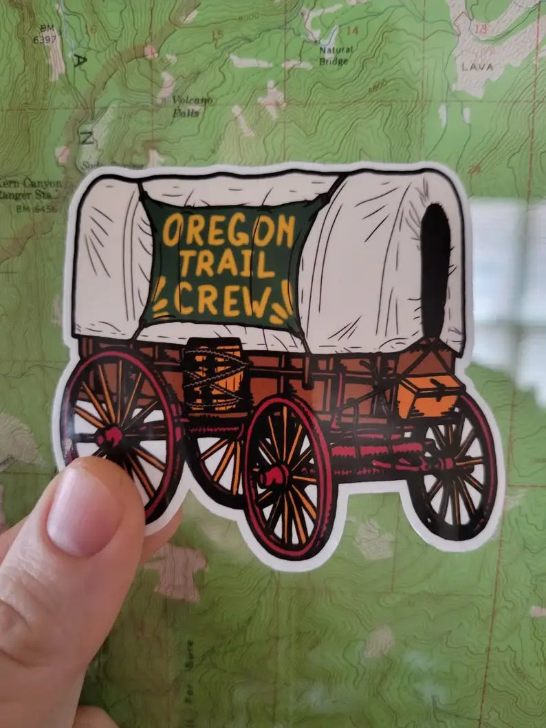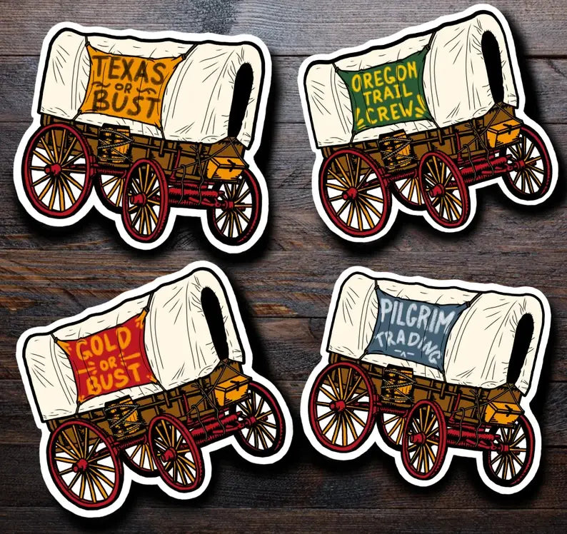 Nothing showcases our need to expand and explore quite like a covered wagon. Celebrate the adventurous spirit of the pioneers with our beautifully crafted covered wagon sticker.