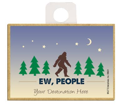 Ew, People (bigfoot with trees) Camping / RV themed wood fridge magnet, can be nh your destination . After you place your order, email us with the exact wording of your destination. Email us at sales@sjtent.com #Big Foot #Sasquatch
