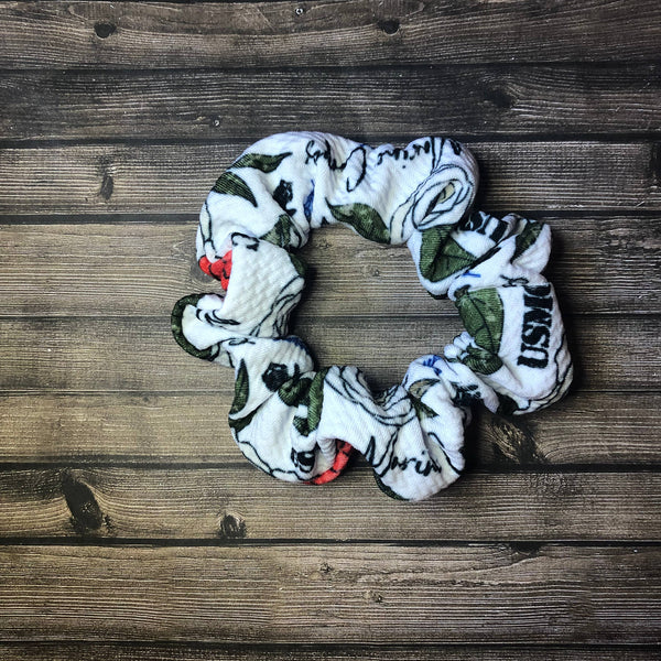 This US Marine Corps scrunchie is made from bullet fabric and all fabric has been pre-washed. This piece is sewn and made in the United States in a smoke-free and dog friendly home. I hand stitch each scrunchie closed so that it is seamless.